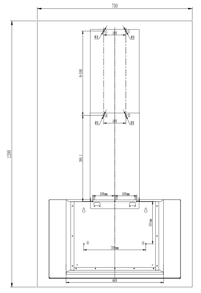 Power Supply: AC 220–240V, 50Hz, 93W Type: Wall-mounted Width: 60 cm Boost: 565 m³/h,Maximum: 513.9 m³/h,Minimum: 271.4 m³/h Maximum Free Airflow Extraction: 694.1 m³/h Control Panel: Touch control Speeds: 3 + Boost Motor: 1 × 90 W BLDC Color : Black Material: Painted metal with glass Lighting Type: Integrated Lighting: LED 2 × 1.5 W 1 aluminium filter Energy Efficiency Class: A+++ Noise Level: 45–55 dB Noise Level (Boost): 61 dB Included Accessories:1 aluminum grease filter, Flexible aluminum duct, Mounting bracket, Screws, Black chimney (40 cm + 40 cm)