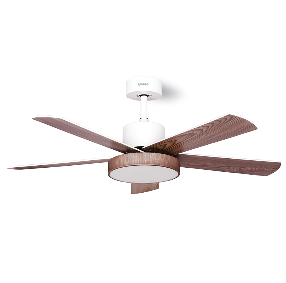 Diameter 122 cm (48”) 5 blades for better air distribution, reversible blades in white-wood color 6 speed levels DC motor Features Natural Wind function (simulates natural breeze) LED lighting (24W) Reverse – Winter function Remote control with speed adjustment and lighting color temperature control Adjustable color temperature of the built-in LED light from 3000K to 6500K 5-year warranty on the motor Color: Wood